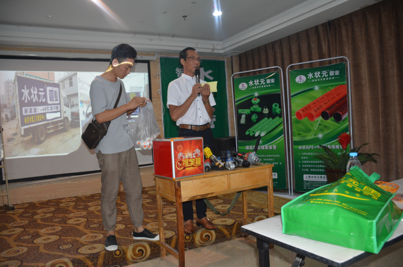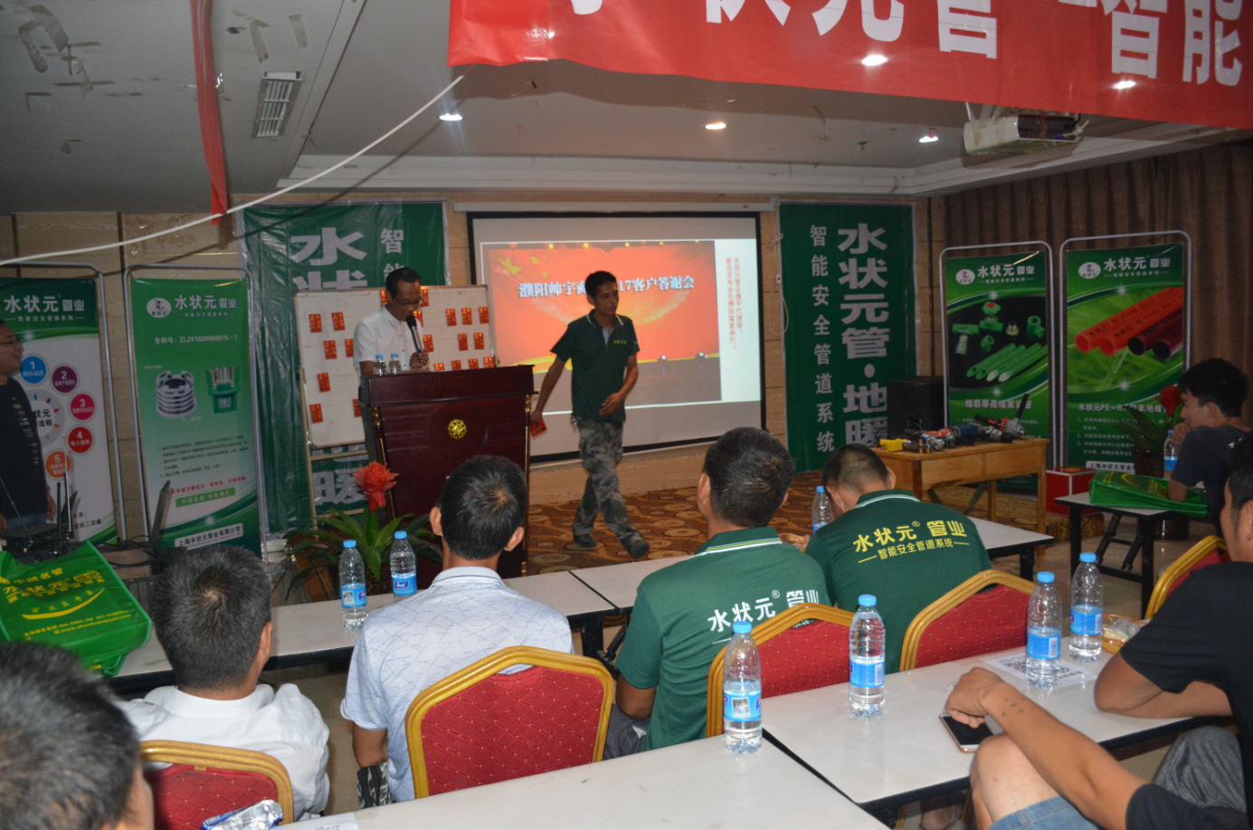首先主持人宣布,泌陽縣水狀元管總代理李總上臺講話,并歡迎大家的到來。