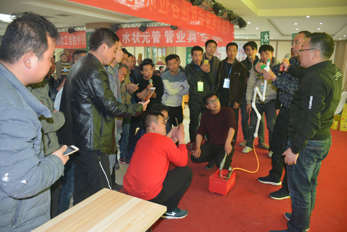 廠方工作人員進(jìn)行現(xiàn)場打壓試驗,各水電工師傅紛紛上臺親自見證水狀元過硬的產(chǎn)品質(zhì)量。